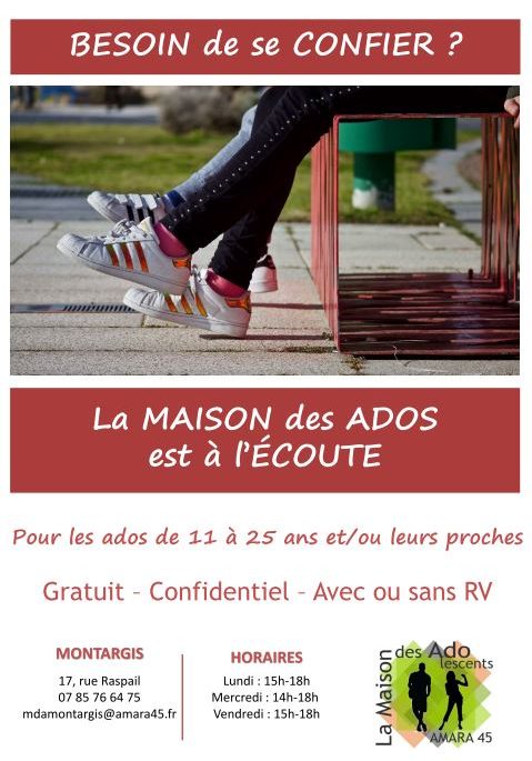 La maison des ados de Montargis est une antenne de la Maison desAdos d'Orléans, de l'association AMARA 45, financée par la CAF et l'ARS.